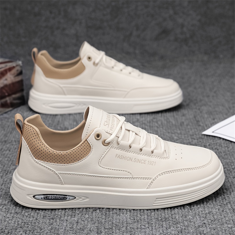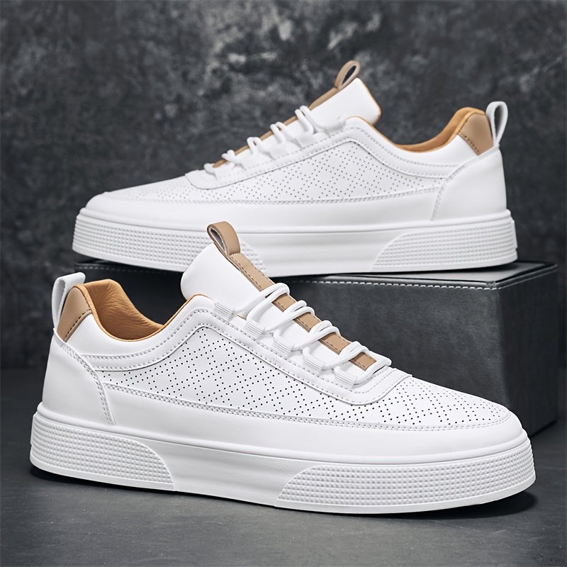 Stylish & Durable Men's PU Leather Sneakers: Easy-Clean, Breathable with Superior Traction & Lace-Up Design