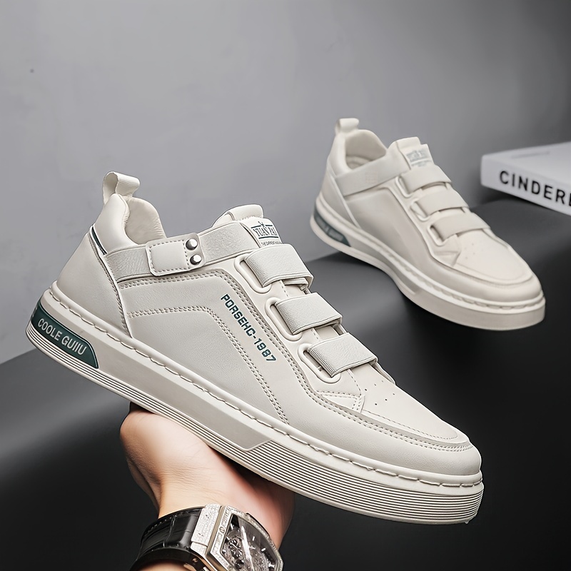 Men's Solid Colour Low Top Skateboard Shoes With Hook & Loop Fastener, Comfy Non Slip Durable Rubber Sole Sneakers For Men's Outdoor Activities