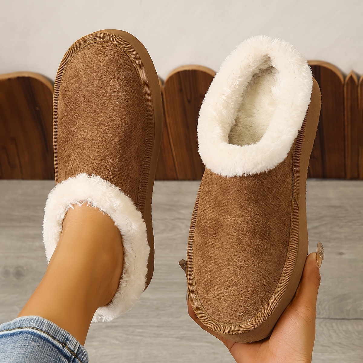Solid Color Home Warm Slippers, Slip On Soft Sole Flat Non-slip Fuzzy Shoes, Winter Plush Cozy Slides Shoes