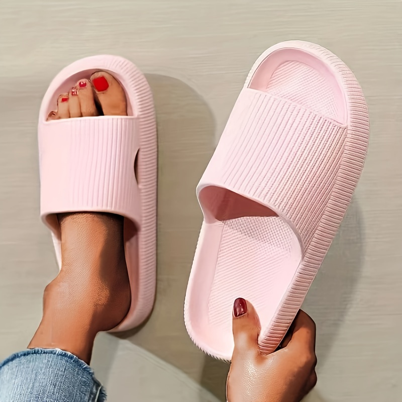 Women's Solid Color Pillow Slippers, Causal Open Toe Quick Drying Non Slip Platform Shoes, Lightweight Bathroom Shoes