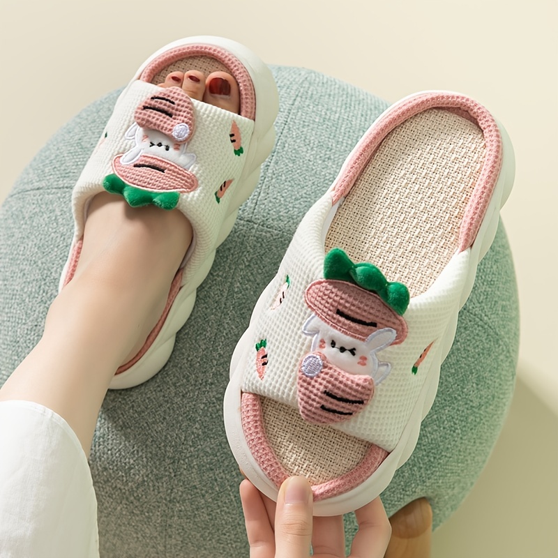Women's Cute Cartoon Home Slippers, Indoor Platform Non-slip Slippers, Rabbit & Carrot Decor Linen Slippers
