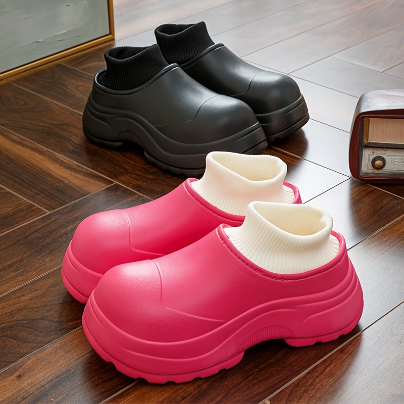 Waterproof Slip On Platform Slippers, Fashion EVA Soft Sole Knitted Splicing Shoes, Indoor & Outdoor Slippers