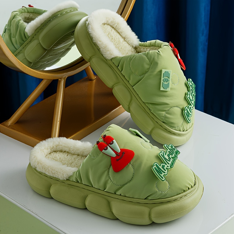 Cute Cartoon Decor Fuzzy Slippers, Slip On Round Toe Solid Color Platform Non-slip Shoes, Plush Winter Warm Home Slippers
