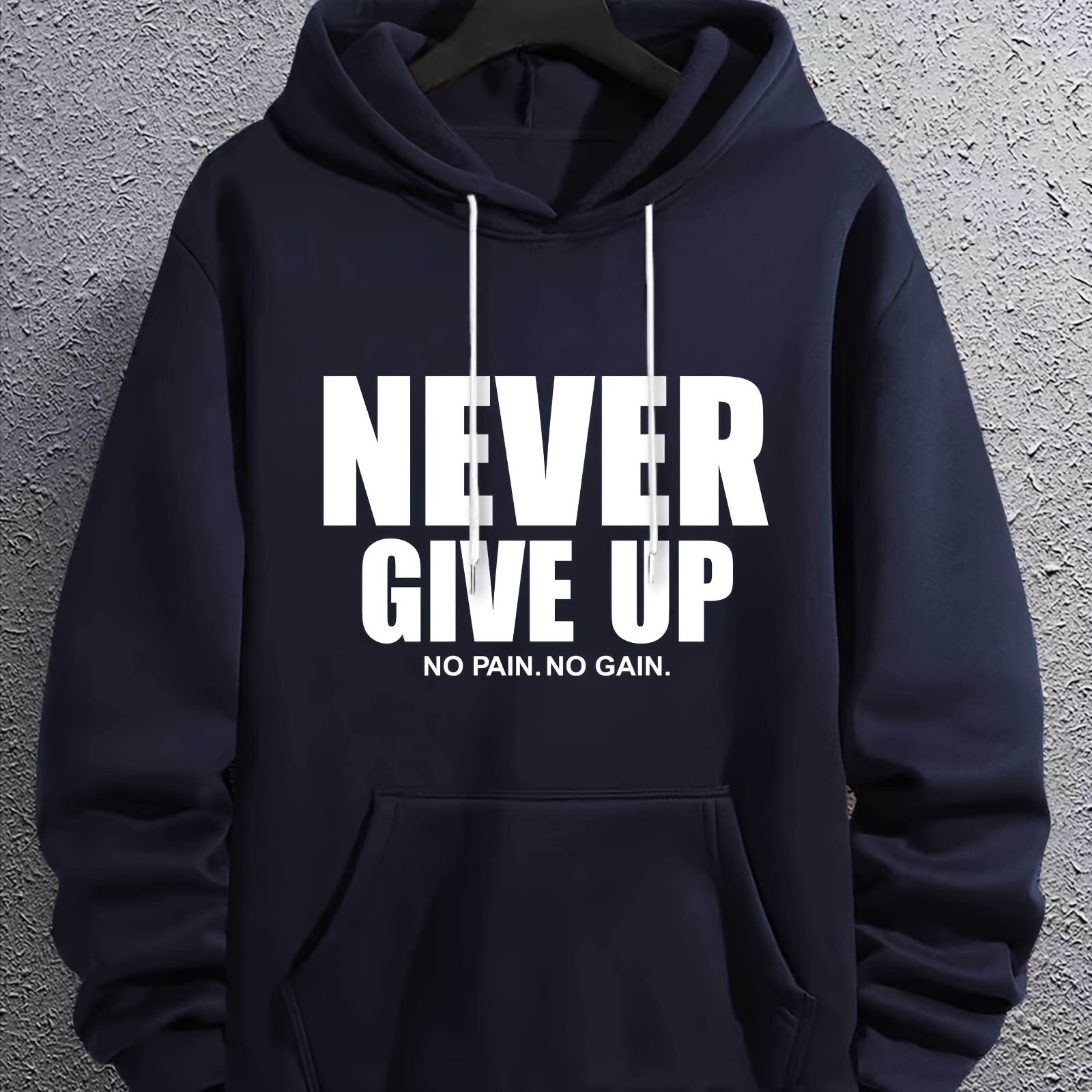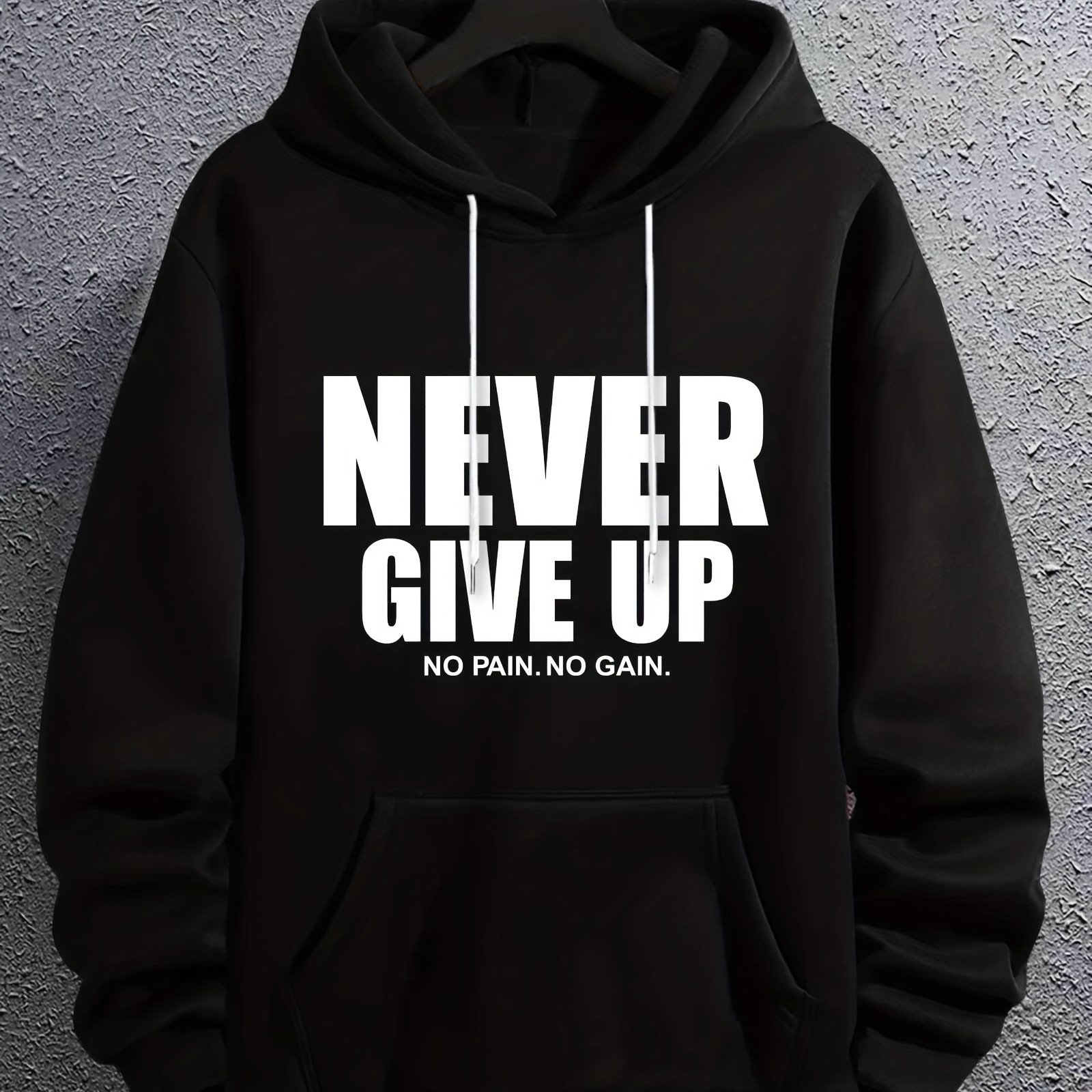 NEVER GIVE UP Men's Kangaroo Pocket Hoodie - Casual Long Sleeve Pullover Sweatshirt for Fall Winter