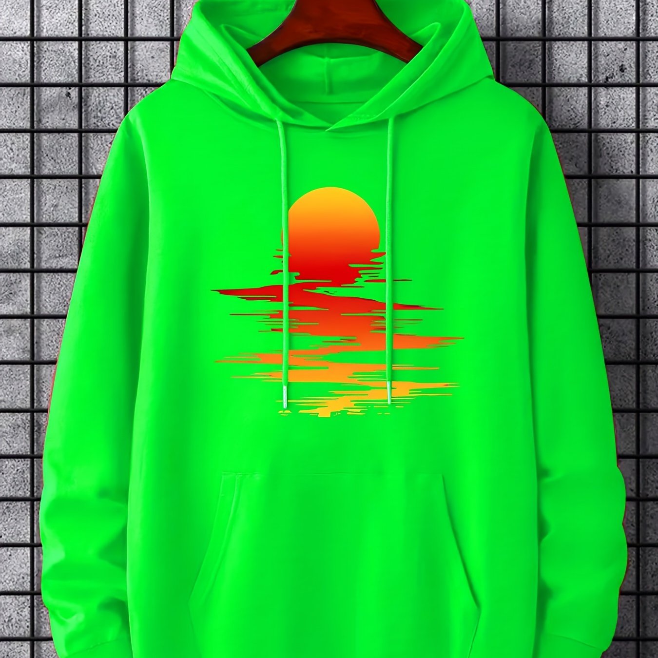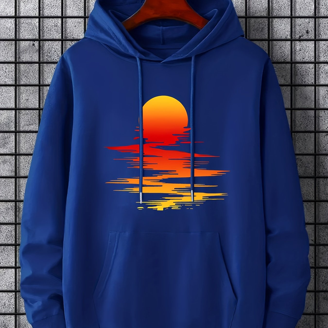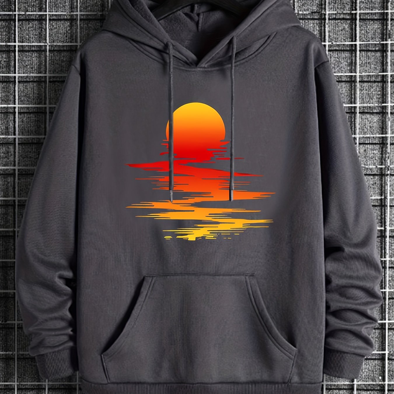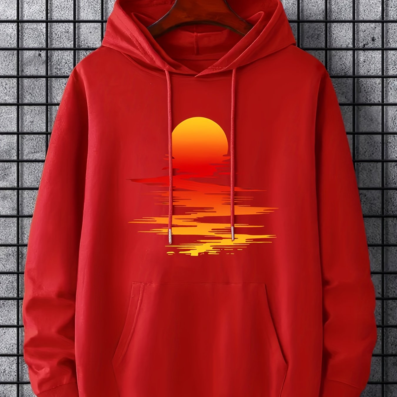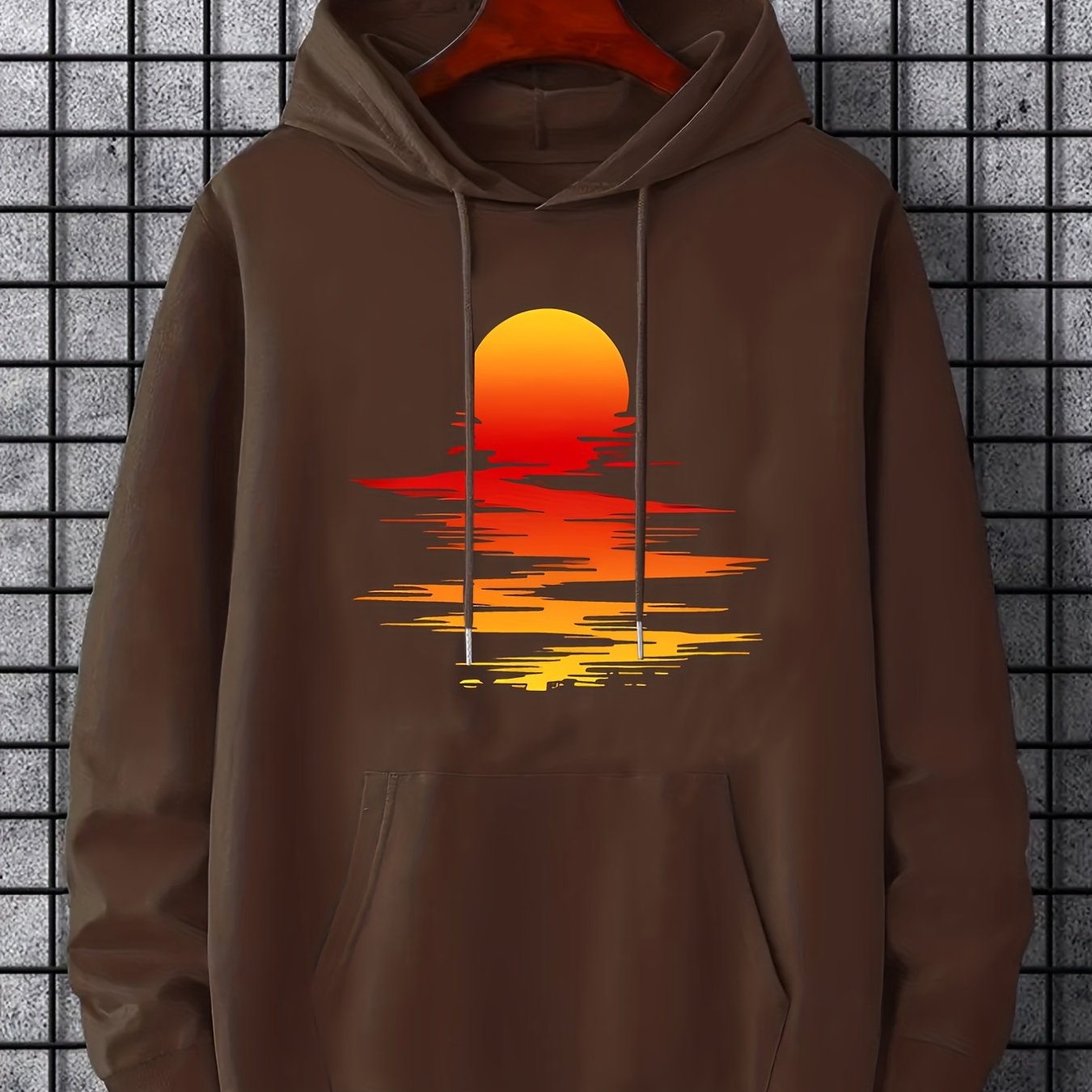 Sunset Print Hoodie, Cool Hoodies For Men, Men's Casual Graphic Design Pullover Hooded Sweatshirt With Kangaroo Pocket Streetwear For Winter Fall, As Gifts