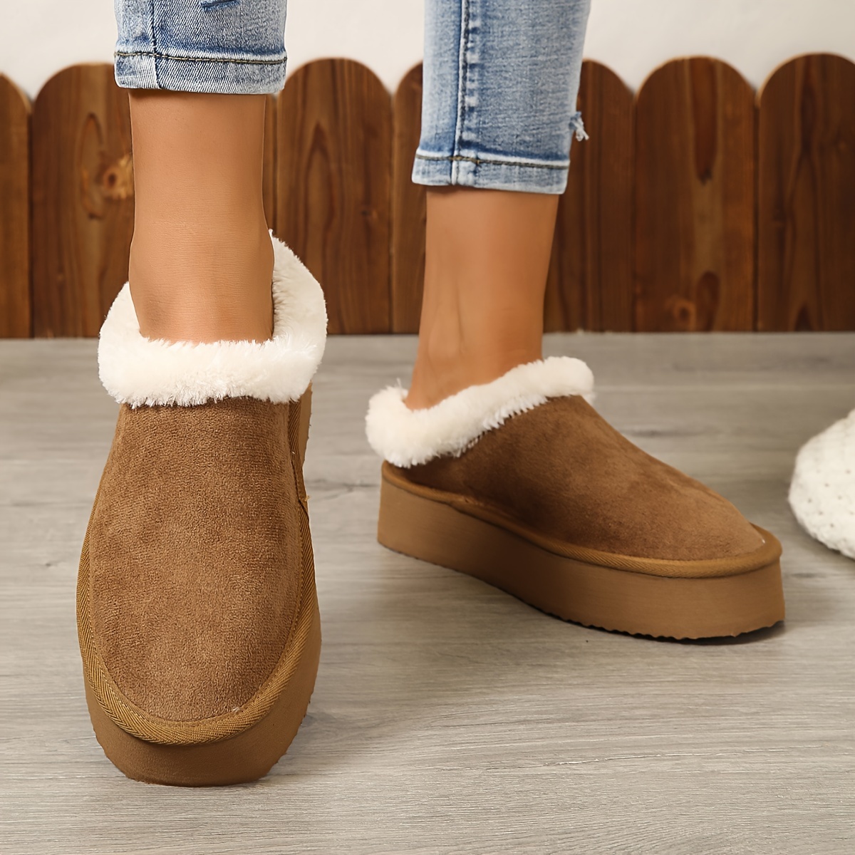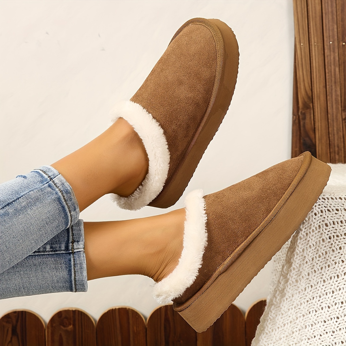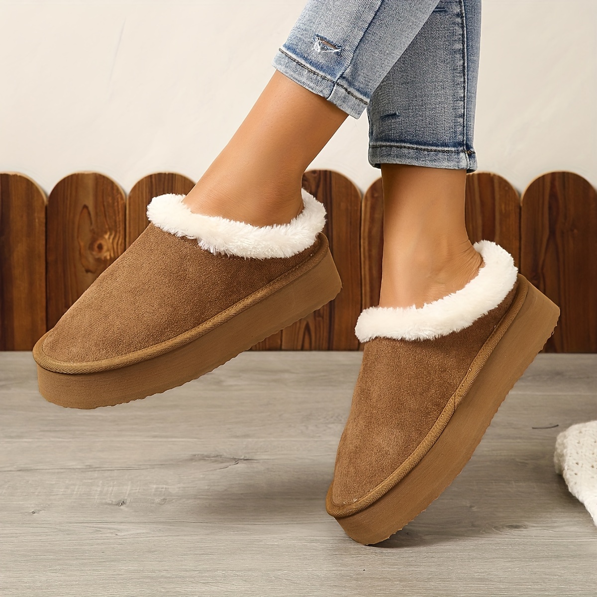 Warm Solid Color Platform Slippers, Casual Slip On Plush Lined Shoes, Comfortable Indoor Home Slippers