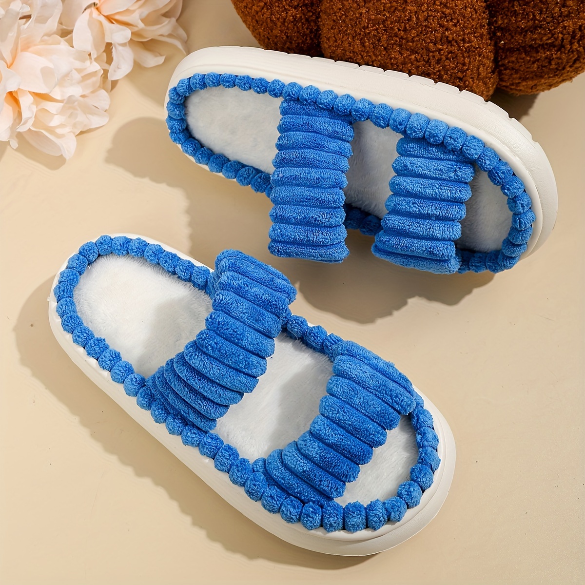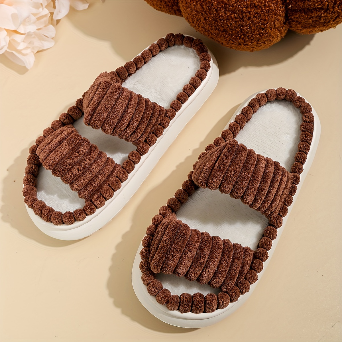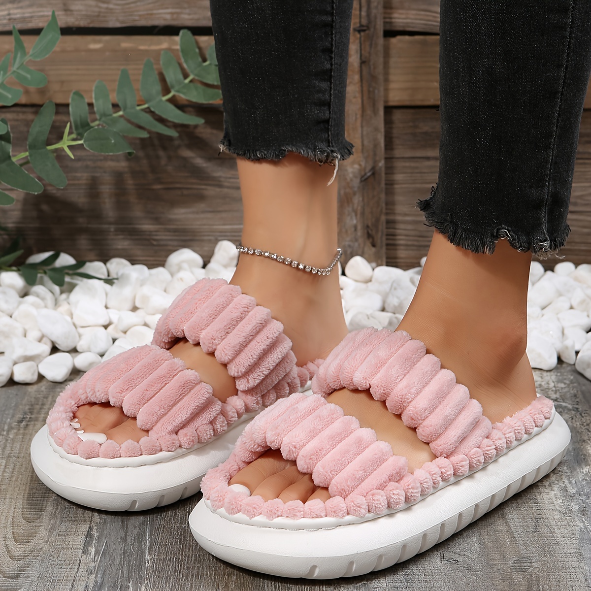 Winter Double Band Plush Slippers, Super Soft Open Toe Fuzzy House Shoes, Cozy & Warm Home Slippers