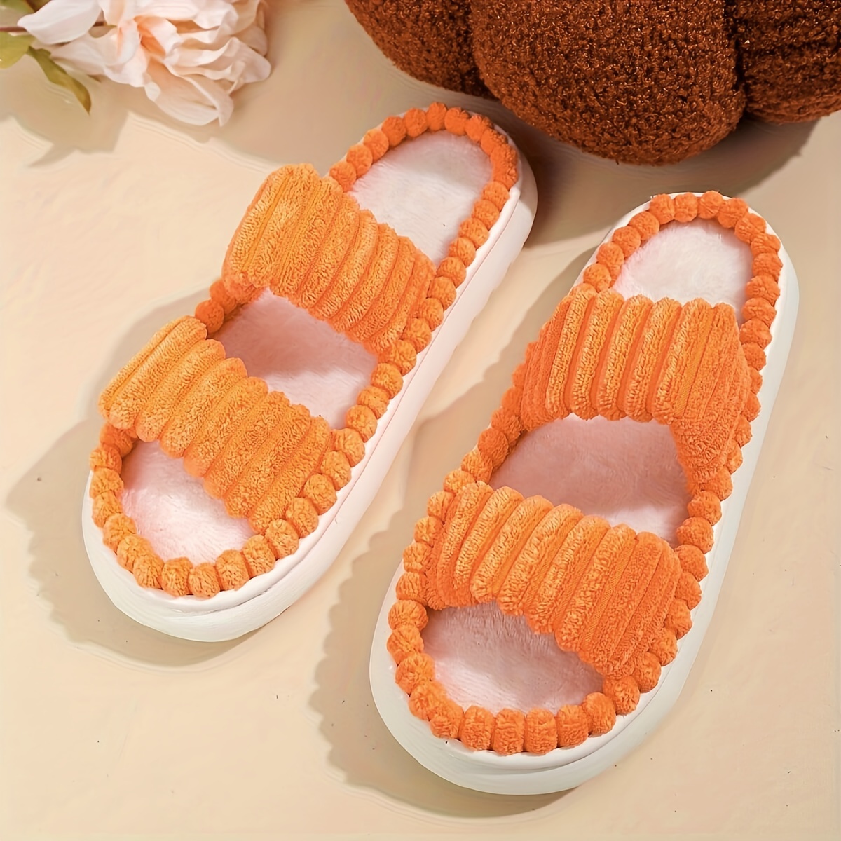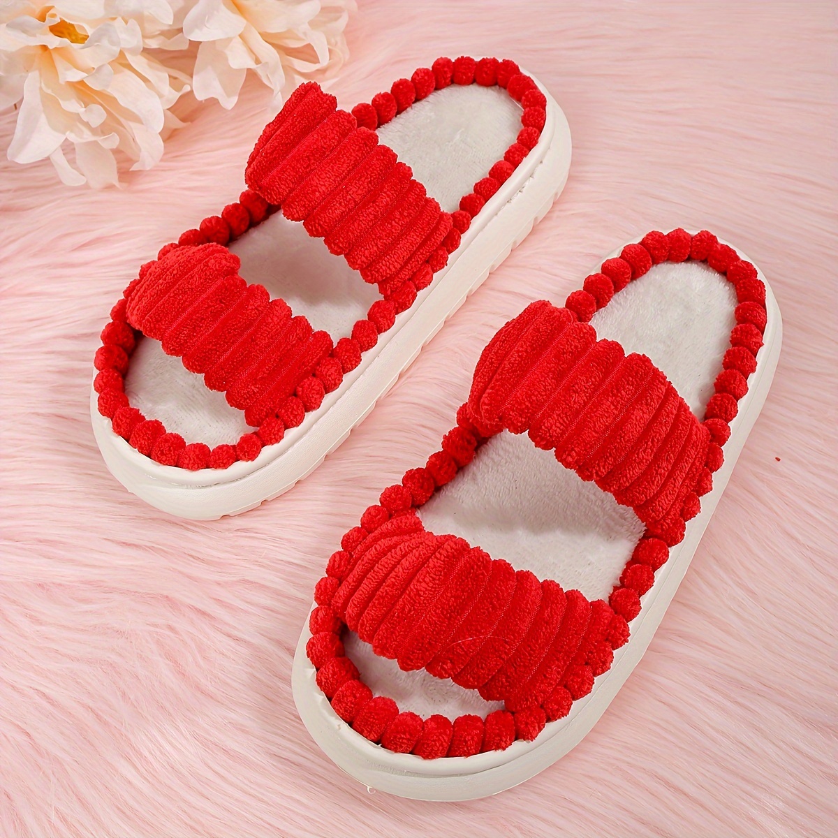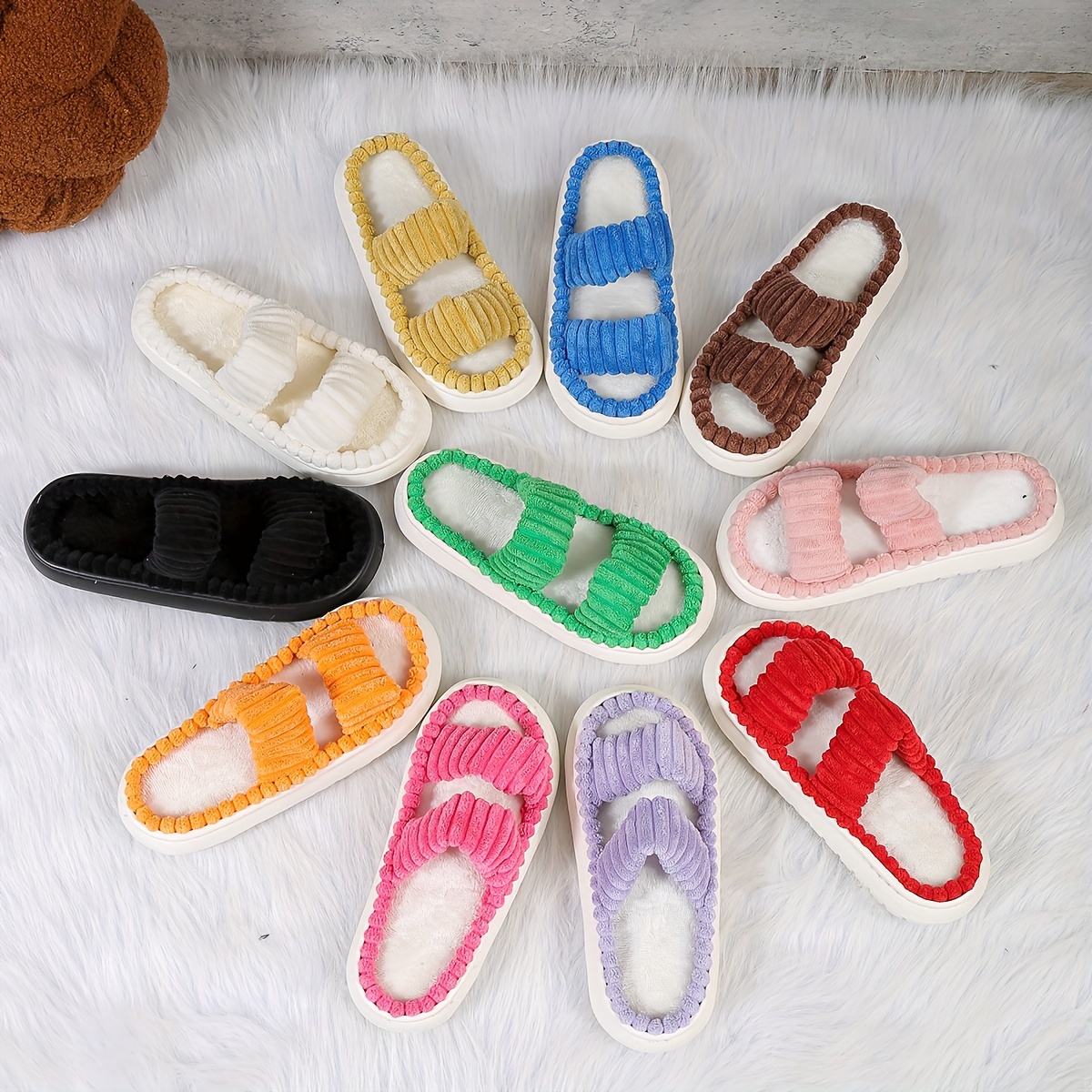 Winter Double Band Plush Slippers, Super Soft Open Toe Fuzzy House Shoes, Cozy & Warm Home Slippers