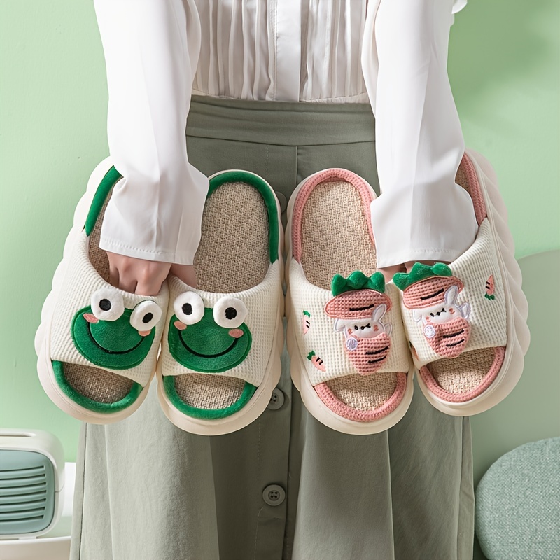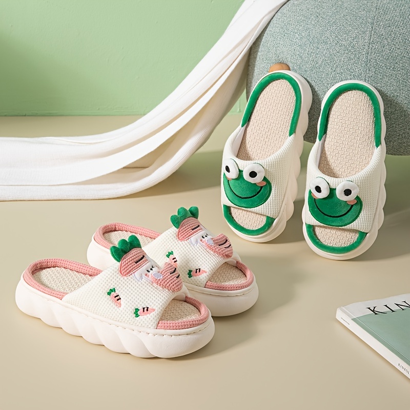 Women's Cute Cartoon Home Slippers, Indoor Platform Non-slip Slippers, Rabbit & Carrot Decor Linen Slippers
