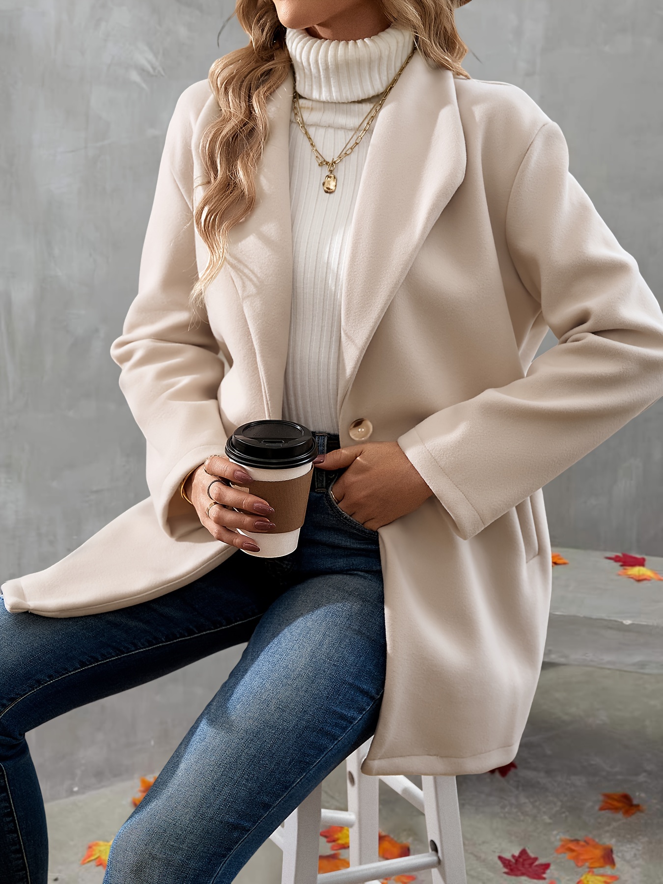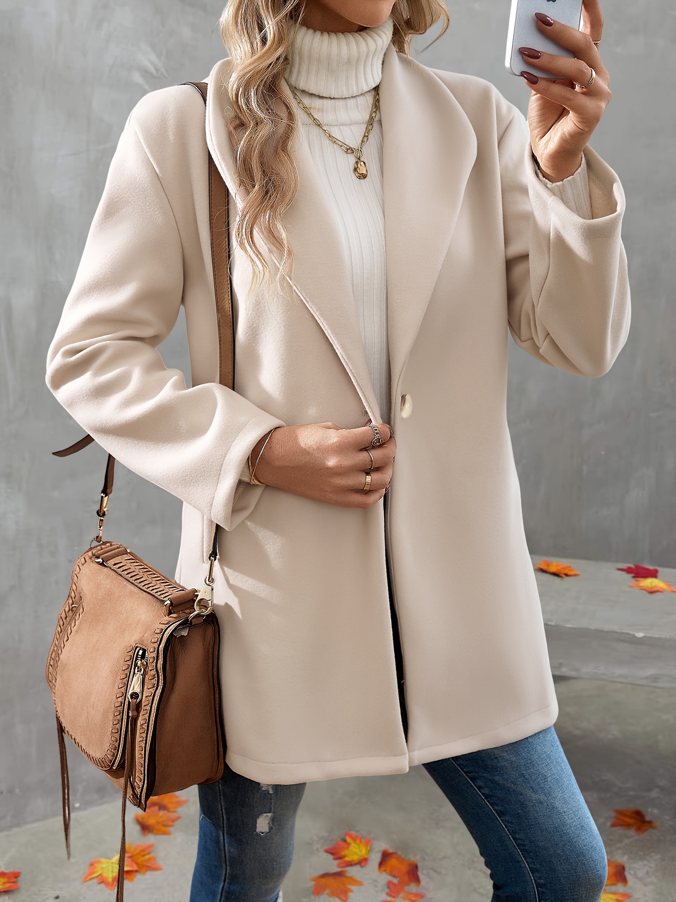 Women's Solid One Button Overcoat - Casual Long Sleeve Outerwear with Pockets for Stylish and Comfortable Winter Fashion